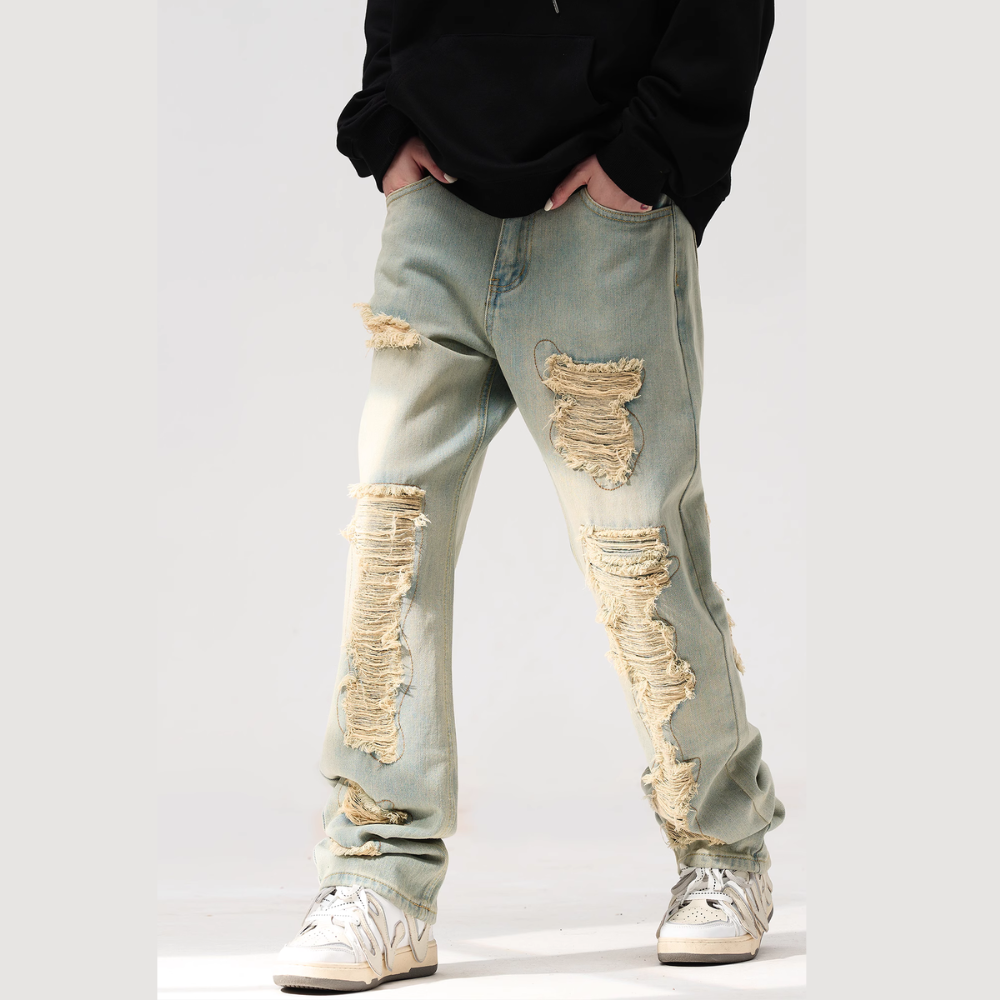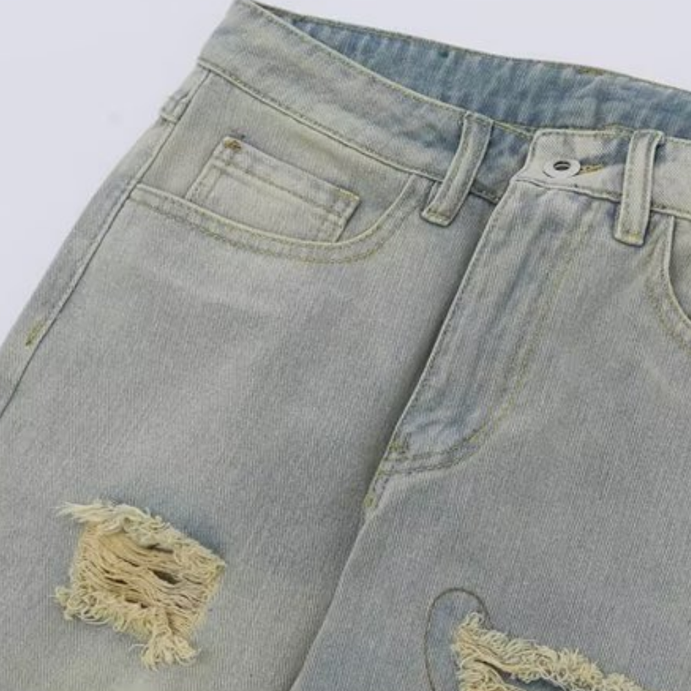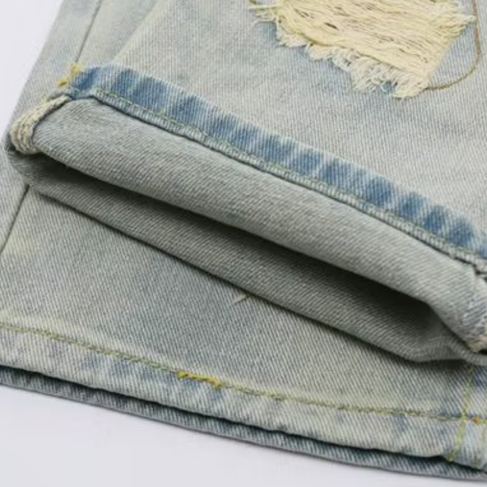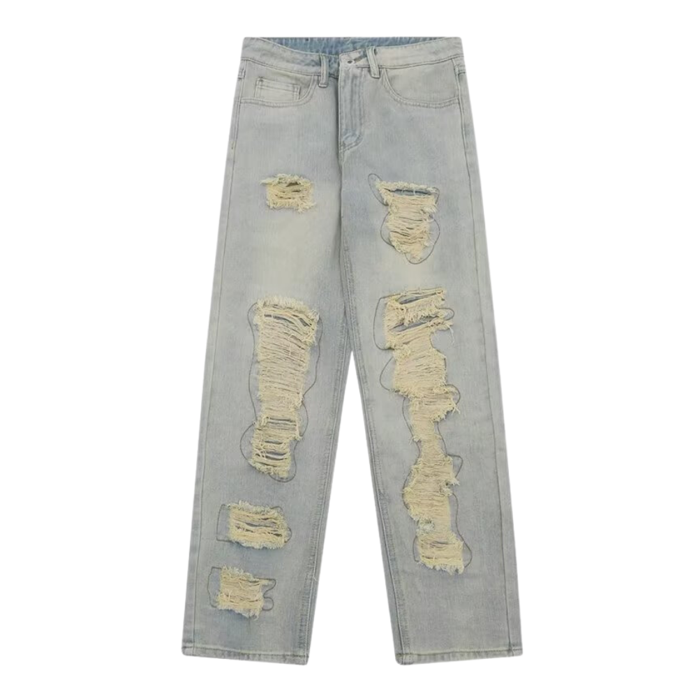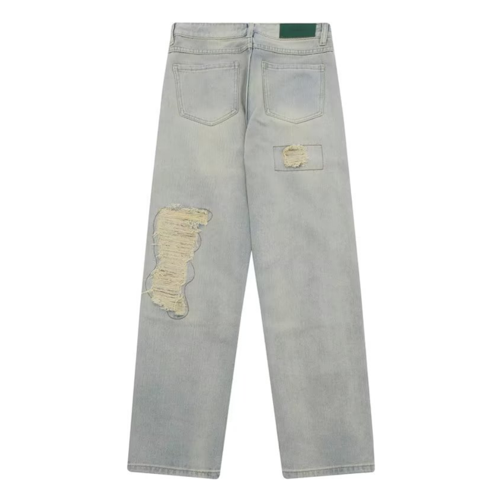 American Retro Loose Straight Washed Old Patch Ripped Jeans