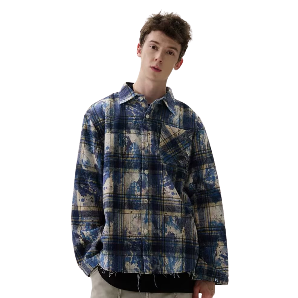 BAGGOUT Distressed Plaid Look shirt