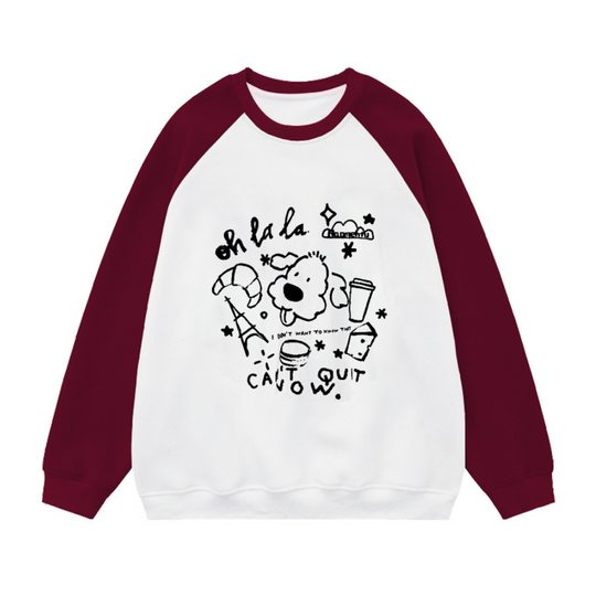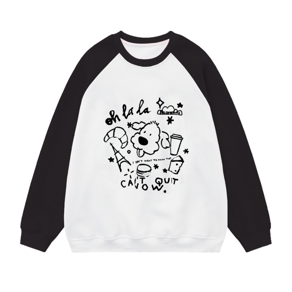 Cute Cartoon Print Patchwork Sweatshirt