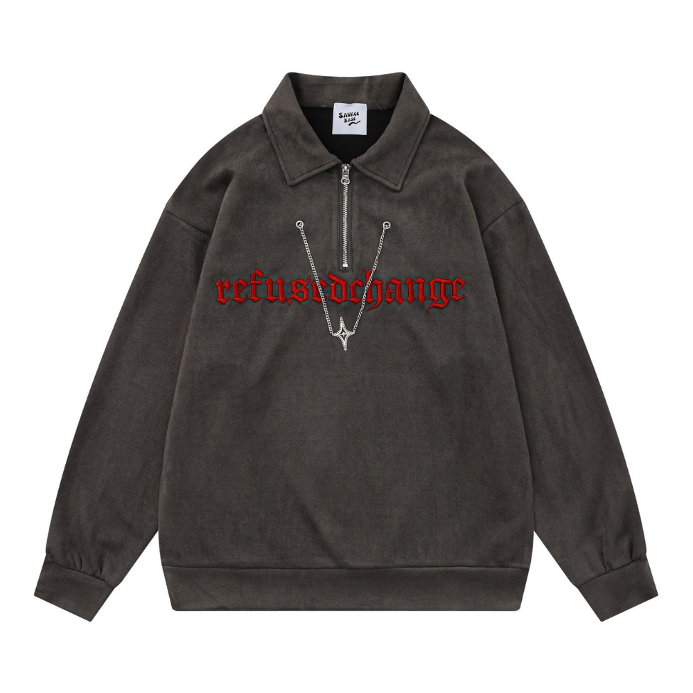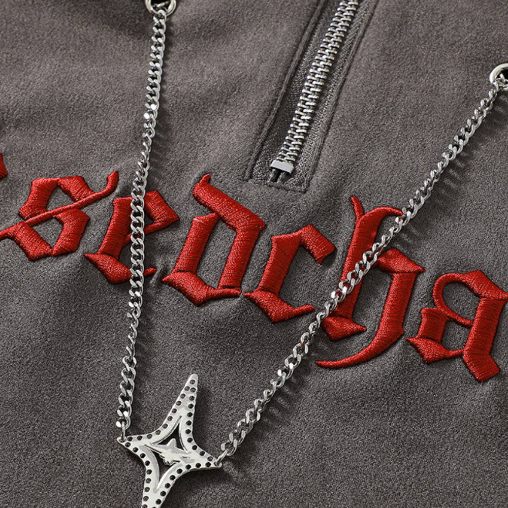 Letter Embroidered Suede Sweatshirt