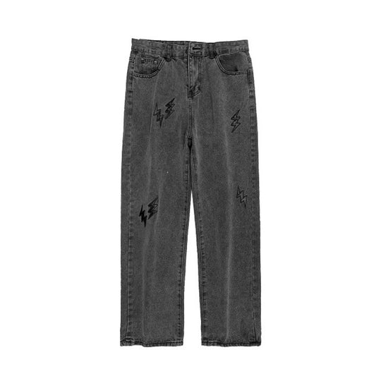 Street Lightning Embroidery Straight Jeans