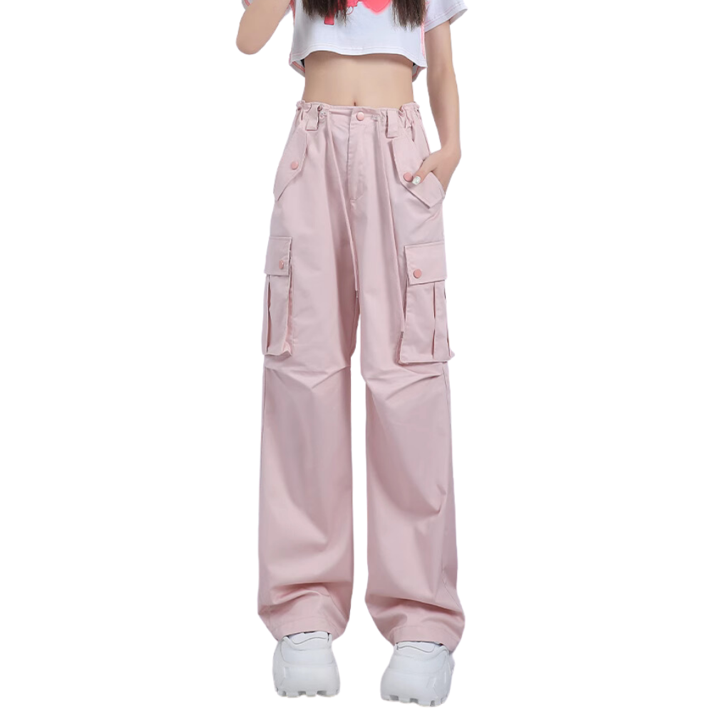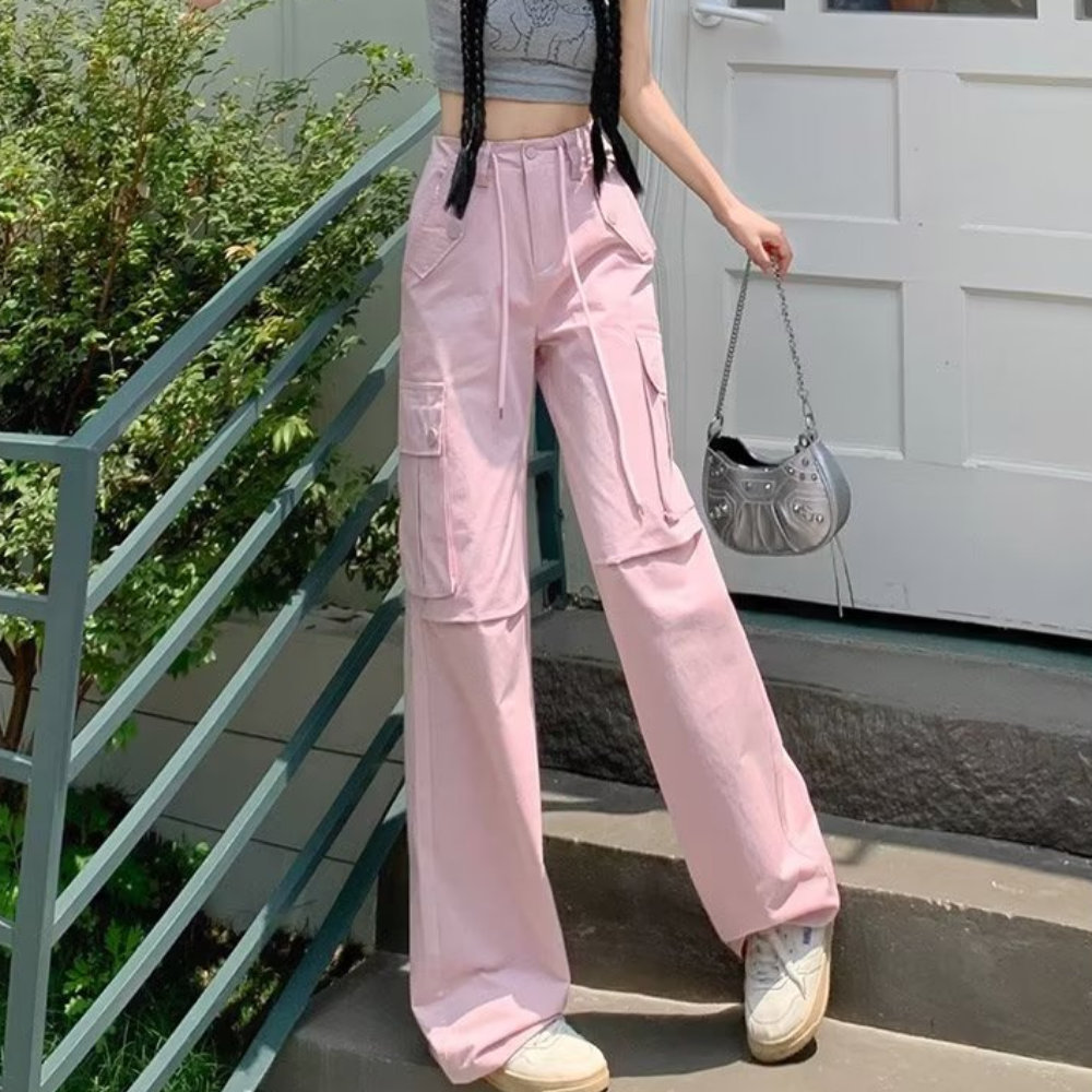 Women's Pink High Waist Straight Cargo Pants