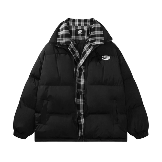 Retro Plaid Lined Fake Two Pieces Coat