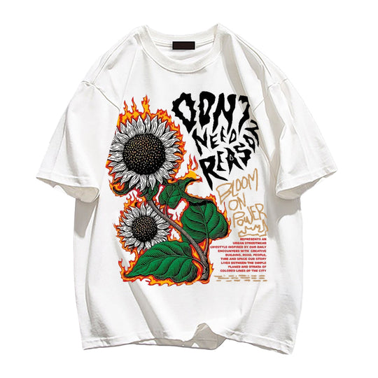 【Subscription】 Burning Sunflower And Slogan Print Trendy T-shirt
