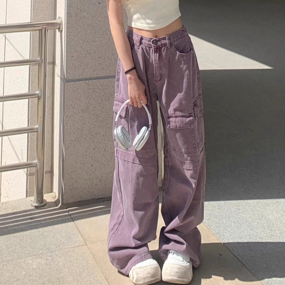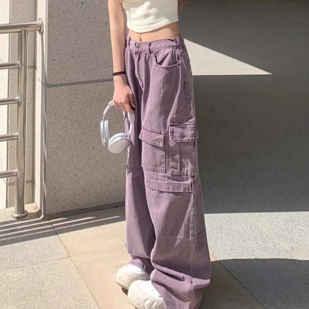 Women's American Retro Purple Cargo Pants