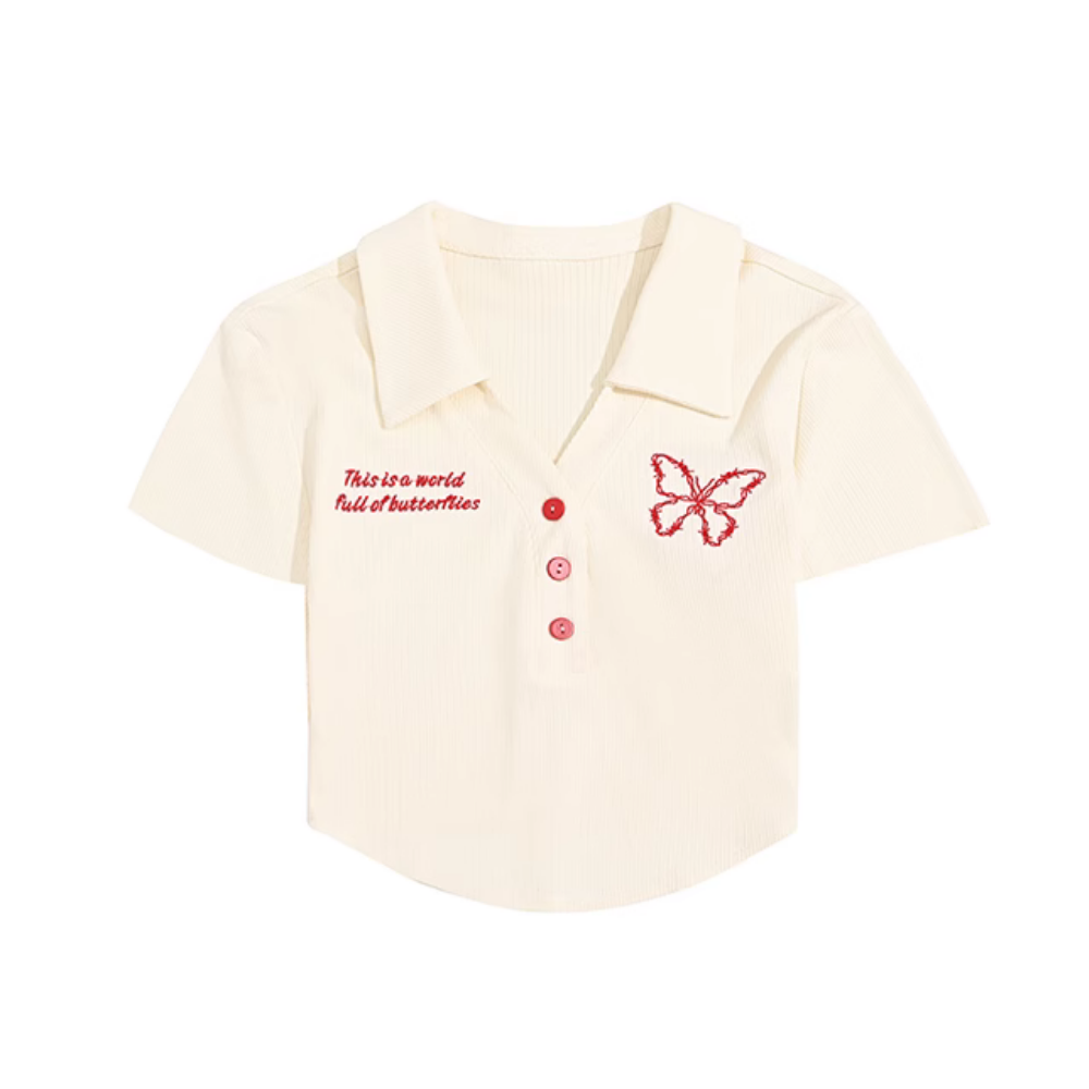 Women's Butterfly Embroidery Cropped Tee