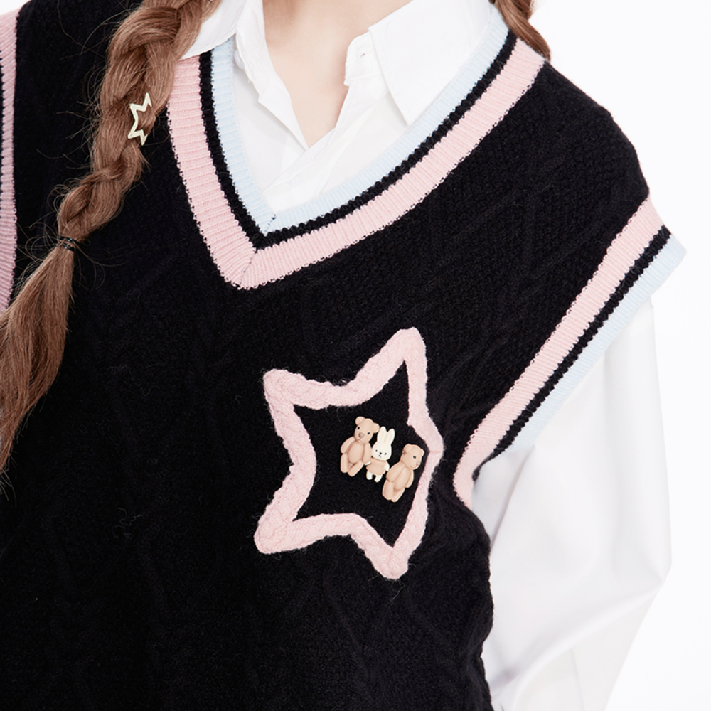 Women's Preppy Style Star Embroidered Knit Vest
